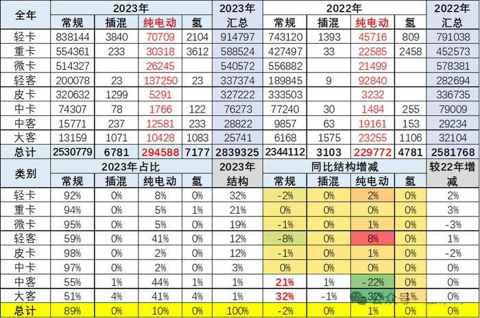 商用车的卡车和客车结构相对稳定。卡车中的轻卡表现较好,而重卡在去年深度调整后的2023年走势较强。