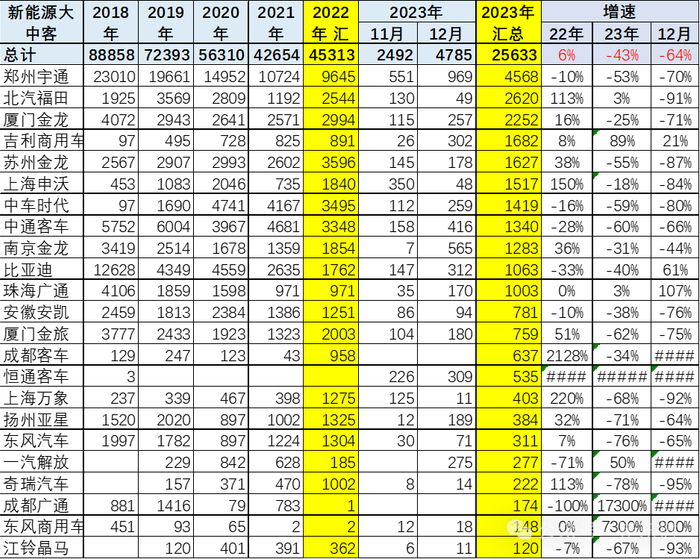氢能源的商用车靠补贴拉动销量,只有大客车的补贴高,氢能源总体表现一般。