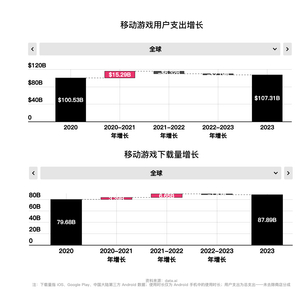 dataai发布2023 年全球移动游戏市场总结报告称,2023 年,全球手游用户支出下降了 2%,至 1073 亿美元,下载量在后疫情时期也首次出现下滑,降至 880 亿次。新兴市场的增长未能填满饱和市场下载量增长的疲软,移动游戏市场虽然在经济下行环境下表现出不错的韧性,但尚未完全恢复 2021 年的光景。