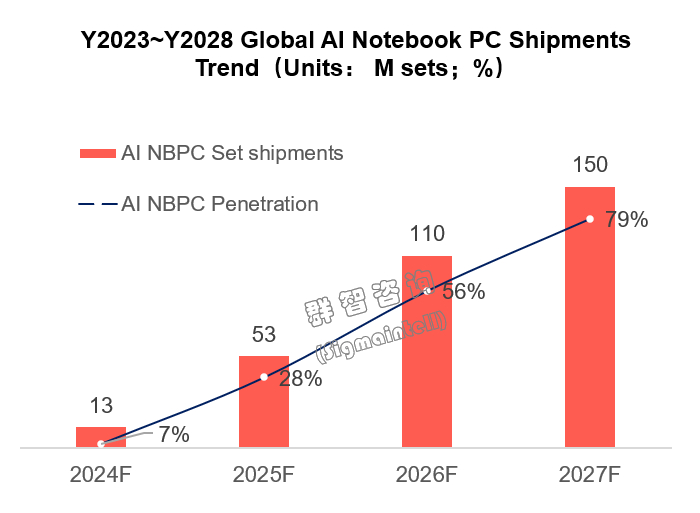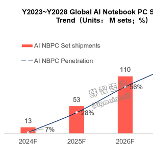 群智咨询:预计2024年AI笔记本电脑出货量达到1300万台 2027年AIPC渗透率逼近80%