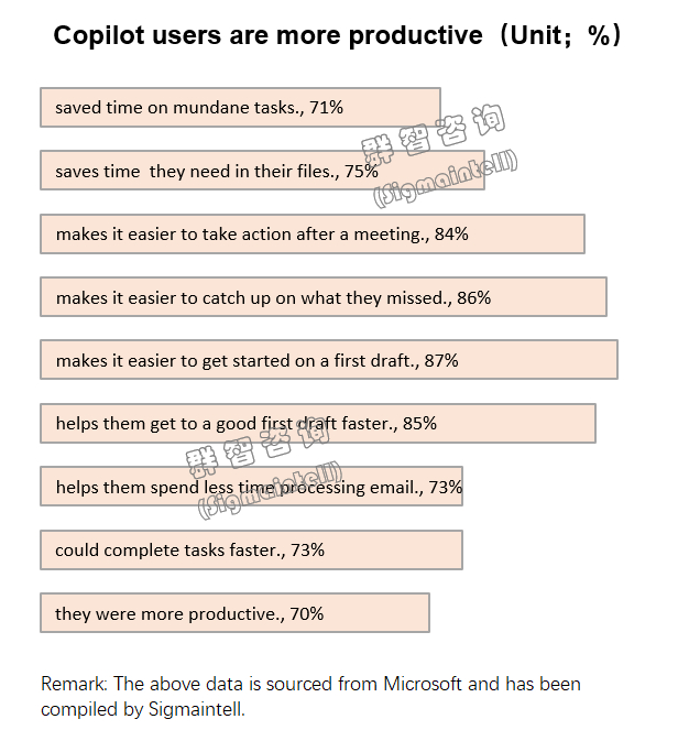 群智咨询研究发现,Copilot这一革命性的AI助手已经成功地提高了人们的生产力和创造力。它不仅为用户节省了宝贵的时间,还使得77%的使用者表示不愿放弃这一高效的工具。更有甚者,70%的用户表示,Copilot使得他们的工作效率得到了显著的提升。