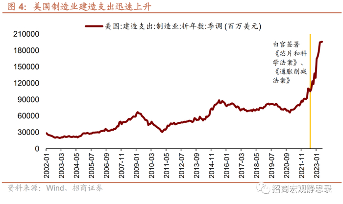 美国:2022Q3以来在两项法案支持下制造业投资迅速上升,未来四年财政均将助力制造业投资加速。