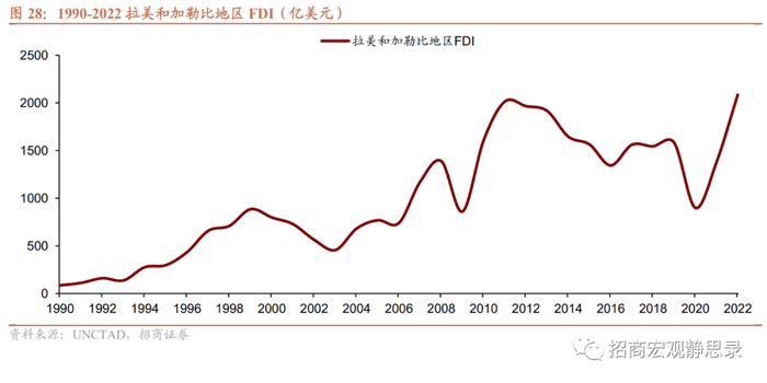 (四)拉美和加勒比地区:疫后整体FDI流入加快,明后年墨西哥FDI或受益于近岸外包和投资计划