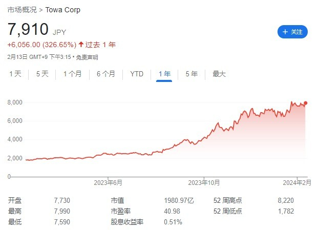乘上HBM东风,过去一年,东和股价“狂飙”326.65%,市值刷新历史新高。