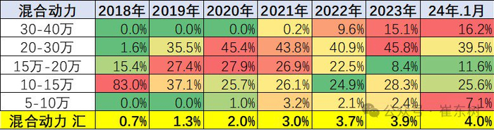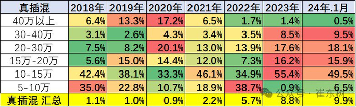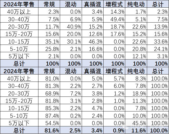 插混车型的增量主要在低价区间,自主的插混技术成熟后,已经在中低价的市场获得较大份额。