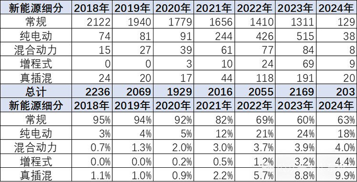 混动的车市份额也是在持续提升,2024年的供给改善,导致份额逐步提升。政策驱动下的市场需求转向插混,混动的市场表现一般。
