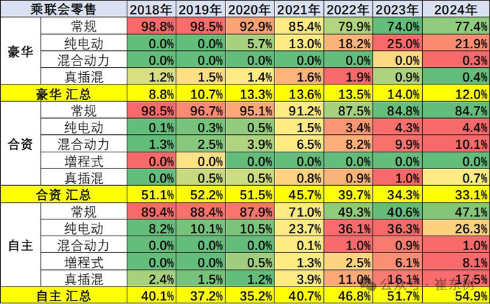 2024年特斯拉与新势力和自主品牌表现很好,总体看新能源的优势区域在自主和特斯拉较突出,新势力的结构波动较大。