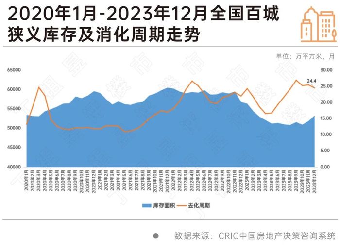 2023年末百城狭义库存降至5.6亿平
