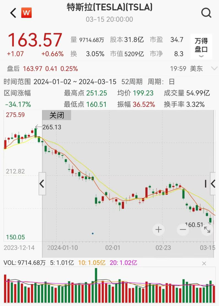 伴随着毛利率的一降再降,投资者已经用脚投票,今年来,特斯拉股价累计跌幅接近35%。