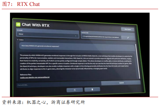 RTX Chat:默认使用人工智能初创公司 Mistral 的开源模型,但也支持其他基于文本的模型,包括 Meta 的 Llama 2,利用 RTX GPU 上的 Nvidia Tensor core 来加快查询速度,可以在本地运行并检索、分析保存在电脑上的文件(支持文本、PDF、.doc、.docx 和 .xml 等格式)。