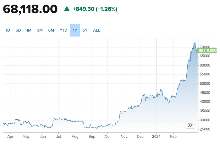 据了解,这一全球最大的加密货币今年累计上涨了56%,上周一度达到了近73798美元的历史新高。不过,这轮上涨引发了一些投资者对泡沫的担忧,在最近几个交易日出现了一轮波动和抛售。