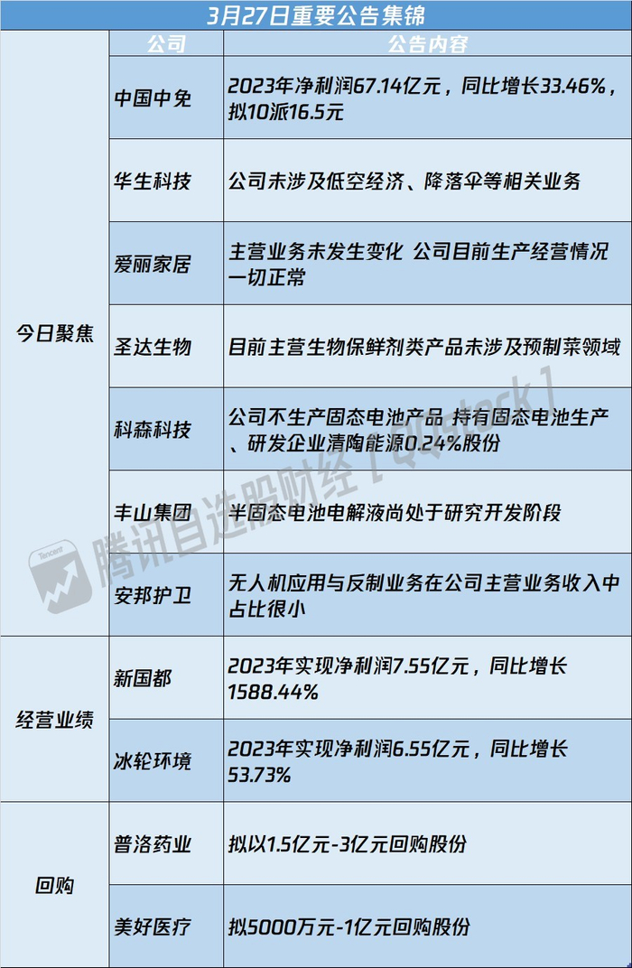 1、中国中免:2023年净利润67.14亿元,同比增长33.46%,拟10派16.5元