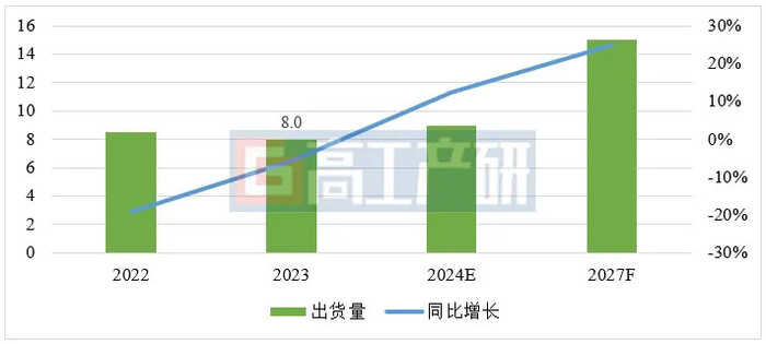 高工产研锂电研究所(GGII)数据显示,2023年我国锂电二轮车锂电池出货8GWh,同比下降6%。主要原因:1)国内终端产品出货量大幅下降,2023年主机厂竞争激烈,锂电车型相对铅酸车型贵1000-1500元/台,市场主推铅酸车型,导致锂电二轮车出货下降;2)海外电动二轮车出口减少,海关总署数据显示,2023年我国电动二轮车出口额为45.6亿美元,同比下降14.2%,出口数量1505万辆,同比下降6.6%。