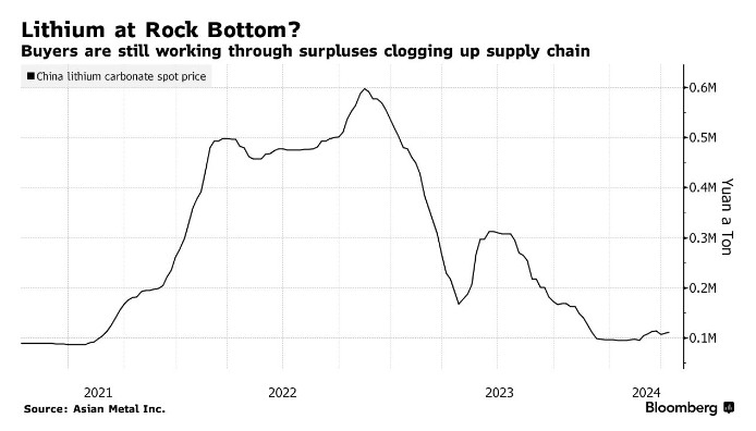 尽管过去一个月锂价在中国市场的反弹表明,至少一些买家正在试探性地回归,但该行业仍拥有大量库存,包括已开采的矿石、锂化工产品、电池和电动汽车本身。