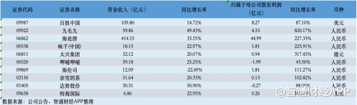 智通财经梳理港股餐饮板块部分上市公司2023年财报数据发现,板块整体业绩呈“增收更增利”的局面。其中,九毛九(09922)、海底捞(06862)、达势股份(01405)的营收增幅超过30%。九毛九、海底捞、奈雪的茶(02150)、特海国际(09658)等多家公司的归母净利润增幅超过100%。