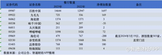 智通财经注意到,若从拓店层面评估餐饮板块后续业绩增长弹性,百胜中国、海底捞、呷哺呷哺等公司值得重点关注。