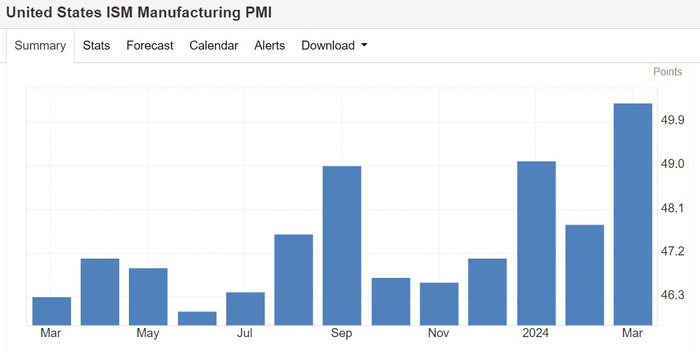 最新的统计数据显示,美国3月ISM制造业PMI为50.3,远超经济学家们普遍预期的48.4,以及47.8这一前值,这一数据标志着美国制造业在经历长达16 个月的收缩后首次超过50这一关键荣枯线点位,意味着美国制造业扩张之势。中国3月制造业PMI较2月回升1.7个百分点至50.8,为2023年9月以来首次回到50荣枯线以上。