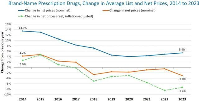 事实上,过去六年中,大型药企的净收入持续下降。这一现象背后的原因复杂多样,但其中一个重要因素是药品价格与制药公司实际收入之间差距的扩大,暴露出PBM在美国药品定价体系中的影响力日益增强。