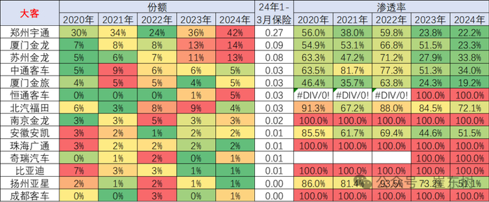大中客的主要厂家还是宇通、金龙等企业表现相对优秀,尤其是宇通的传统燃油车表现较强。中通、福田等企业表现相对也是不错的。新能源大中客车的企业主要是宇通、福田、厦门金龙等表现相对较强。