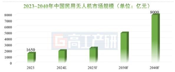 高工产研发文称,2023年我国低空经济规模超5000亿元,据中国民用航空局发布的数据显示,到2025年,中国低空经济的市场规模预计将达1.5万亿元,2035年有望达3.5万亿元。