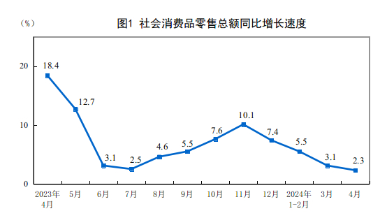 国家统计局:4月份社会消费品零售总额35699亿元 同比增长2.3%