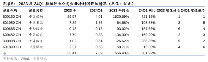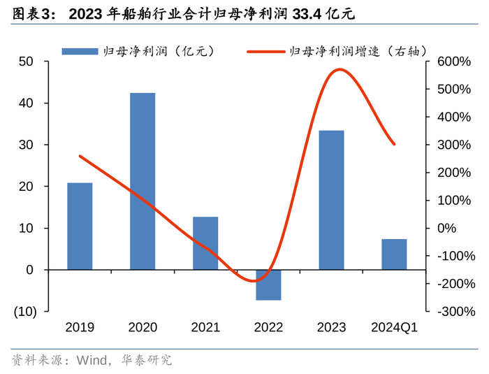 国内:船舶行业业绩拐点显现,2023年归母净利扭亏为盈