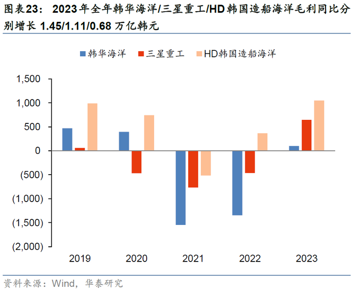 海外:2023年以来韩国船厂营收持续高增,营业利润大幅扭亏