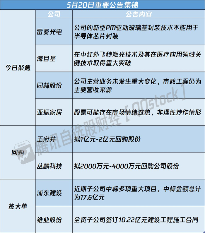 A股公告精选 | 二连板“玻璃基板”概念股雷曼光电(300162.SZ)提示风险