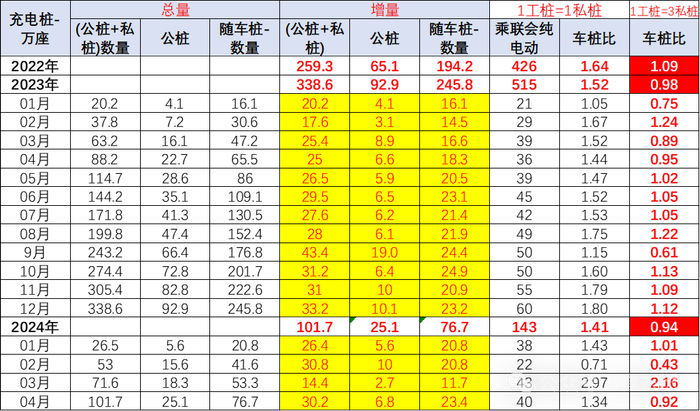但如果细分功能看,按公桩的充电利用率是私桩的3倍,也就是3:1的关系,则充电设施与纯电动的销量占比达到0.94,基本是1:1的关系,由于公桩的安装暴增,总体车桩比的增量已经达到1:1的相对合理水平。