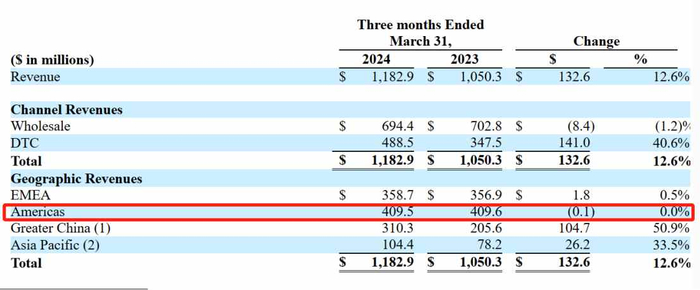除了品牌端的推动,品牌直营模式DTC业务同样也是亚玛芬业绩增长的关键。数据显示,按渠道和区域划分,亚玛芬当期DTC(direct-to-consumer)渠道增幅为41%,且在所有区域市场都实现了双位数增长,而增长主要由大中华区和亚太地区带动,二者营收分别增长了51%与34%,EMEA(欧洲、中东、非洲)增长1%,北美地区营收“零增长”。