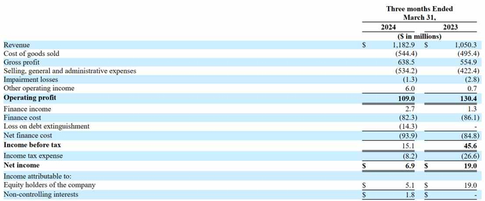 智通财经了解到,5月21日,亚玛芬体育(AS.US)公布了2024Q1季度业绩。数据显示,亚玛芬体育Q1营收同比增长13%至11.8亿美元,超出了分析师平均预期的11.3亿美元;然而,其当期净利润为690万美元,同比下降超过60%;归属于股东的净利润为510万美元,同比下降超过70%。