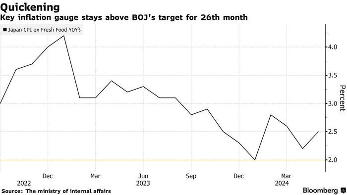 展望未来,可能推动通胀上行的主要因素之一是日元疲软。在过去一个月的大部分时间里,日元兑美元汇率距离34年低点仅一步之遥。周五早盘,日元兑美元汇率在1美元兑159日元左右。日本最高外汇官员神田正人(Masato Kanda)表示,如果汇率出现过度波动,他将采取适当措施的立场没有改变。