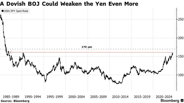 Ales Koutny表示:“如果日本央行在7月会议上仅将月度购债规模降至5.5万亿日元、甚至5万亿日元,市场可能将美元兑日元汇率再度推向170。”他和越来越多投资者一样,预计日元将跌至1美元兑170日元。