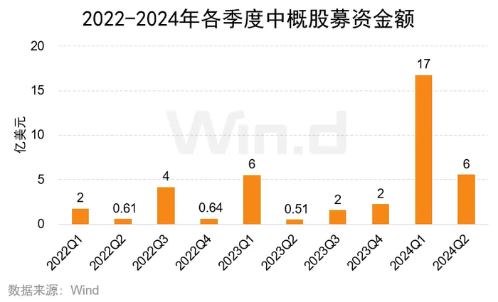 IPO方面,2024年上半年共114家企业成功上市,较去年同期增加10家;融资总金额为194亿美元,同比增长63.30%。IPO金额最大的是亚玛芬体育(中概股),达15.71亿美元。上半年中概股赴美上市数量为24家,较去年同期新增5家,融资金额达22亿美元,同比上升268.97%。再融资方面,一季度融资事件数达446起,再融资金额629亿美元,同比增长38.86%。