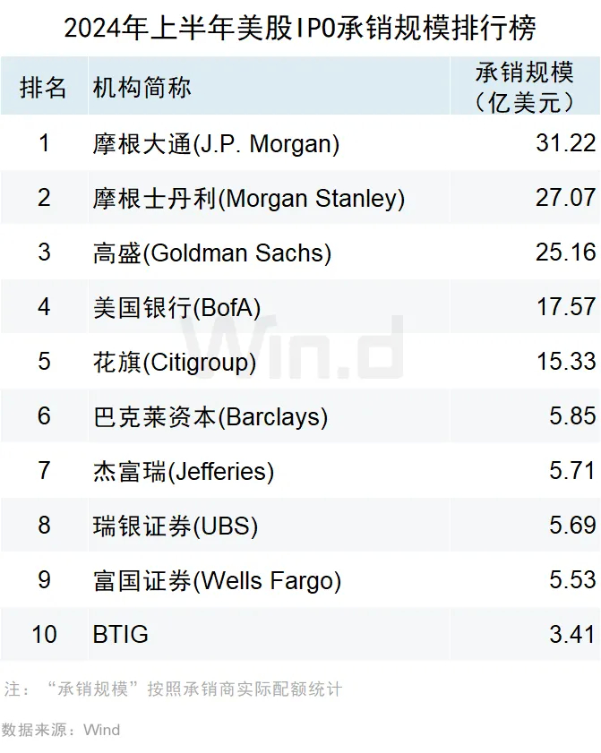 2024年上半年美股承销排行榜