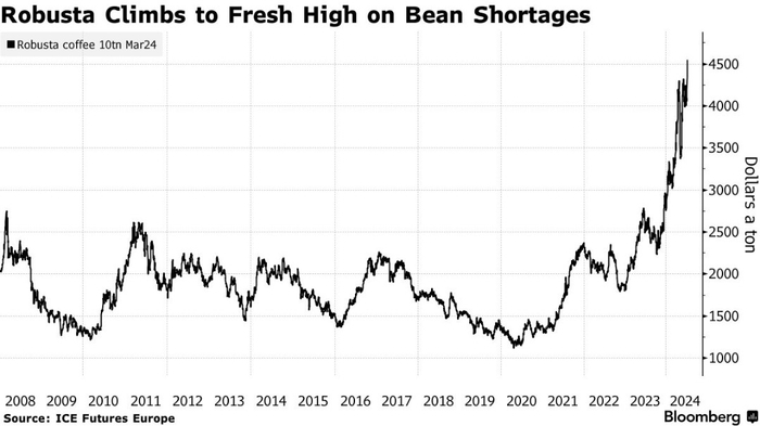 Luigi Lavazza SpA的董事长Giuseppe Lavazza在一次采访中透露,越南的罗布斯塔咖啡豆——一种广泛用于混合咖啡和浓缩咖啡的原料——预计将再次面临产量短缺,导致其价格急剧攀升。他指出,由于今年咖啡豆产量不佳,烘焙商购买越南咖啡豆的价格已经异常高于期货价格,相差高达1,000美元。