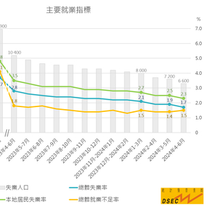 近日,澳门统计暨普查局资料显示,澳门2024年第2季总体失业率(1.7%)及澳门本地居民失业率(2.3%)环比上季均下跌0.4个百分点,并已恢复至2019年第2季水平,就业不足率(1.5%)则持平。