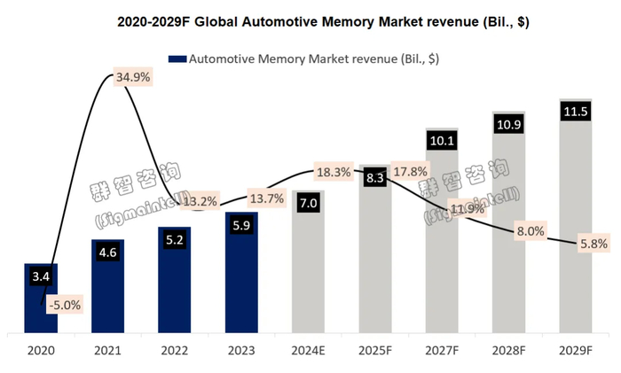 ADAS及车载娱乐系统催生汽车存储新需求,预计2024年全球汽车存储芯片市场规模将达到70亿美元,同比增长18.3%。