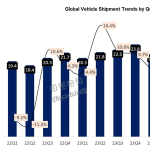 进入到2024年,经济状况的持续低迷使得全球汽车市场的增长面临着前所未有的压力,降本增效、消费降级成为近期汽车行业的代名词。根据群智咨询预测,受限于市场的成熟度以及经济低位导致汽车置换周期并未有明显缩短的缘故,2024年全球汽车出货量预计约为9100万台,仅能够实现约3%的同比增长,预计到2025年后增速将进一步放缓。