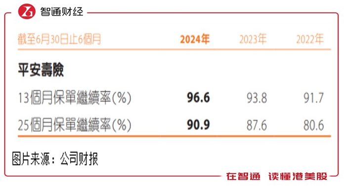 在品质方面,上半年三大渠道均稳定增长,其中代理人渠道新业务价值181.06亿元,同比增长10.8%,占比81.1%,人均新业务价值同比增长达36%,截至2024年6月末,平安寿险个人寿险销售代理人数量34万,这强大的代理人队伍将为该公司带来差异化竞争优势。续保率稳步提升,期间13个月保单续保率高达96.6%。