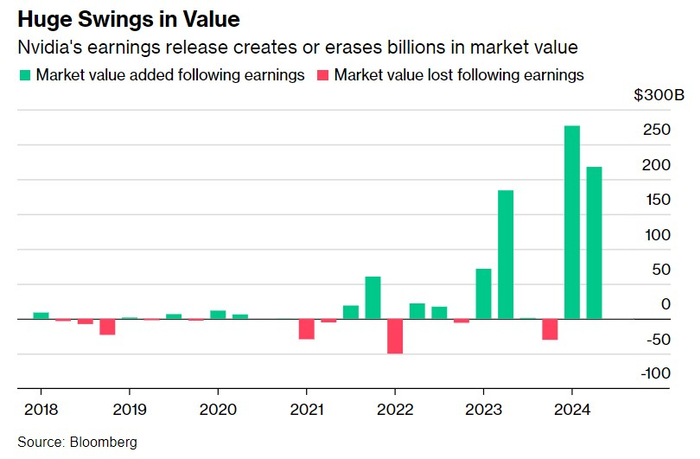 现在,由于全球投资者瞩目的英伟达季度业绩将在周三美股收盘后公布,交易员们将紧盯着他们的显示器,为任何剧烈波动做好准备。华尔街投资机构的普遍共识在于,英伟达截至7月的2025财年第二财季业绩报告发布后,有望创造或抹去高达超千亿美元的市场价值。