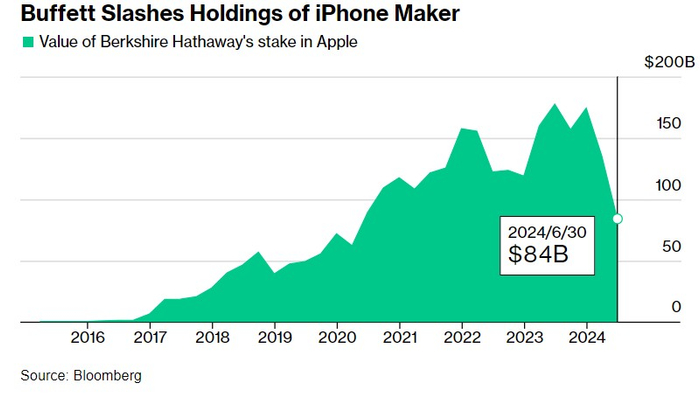 伯克希尔哈撒韦头号重仓股苹果虽然在第三季度偶尔出现大幅下行,但下跌幅度相比于英伟达等热门科技股来说要小得多,且市值高达三万亿美元的苹果第三季度逆势涨超5%,大幅跑赢标普500指数,其中7月和8月苹果累计涨幅接近10%,股神可谓“赚麻了”。这家由沃伦·巴菲特所领导的企业集团近期透露,它在第二季度卖出了所持有的这家科技巨头近一半的股份,其苹果持股规模截至第二季度价值大约为840亿美元,低于截至3月底的约1400亿美元。