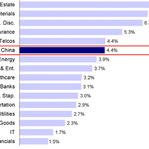 图表:上周MSCI中国指数明显反弹,其中地产与原材料领涨,但多元金融与信息技术涨幅相对有限