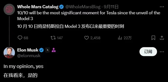 有人发帖称,这将是自推出Model 3以来,特斯拉“最重要的时刻”,对此马斯克积极回应:yes。