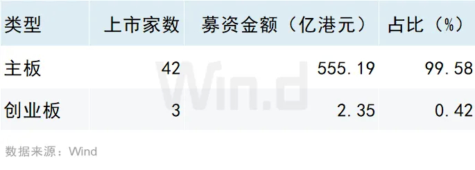 从IPO上市板块来看,2024年前三季度共42家企业在香港主板成功发行上市(未包含GEM转主板企业),仅有3家企业在香港创业板成功发行上市。