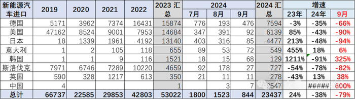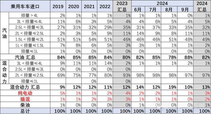 2024年的纯电动的德国进口放缓,插混的美国进口表现较强,混动的日系车走势总体较强。
