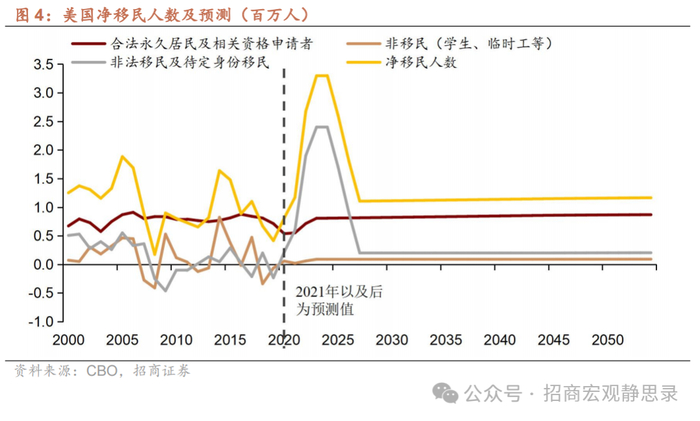 第一,反移民政策或被优先推出作为经济压力测试。上一任期和这一任期特朗普对待移民问题态度一致强硬,叠加目前美国境内存在大量非法移民,本轮可能会推行更严格的反移民政策,包括大规模驱逐行动、修复边境墙、针对非法移民追责等。移民流失势必对美国就业市场和通胀产生冲击,我们认为反移民政策作为首发政策适合压力测试并留有转圜余地,且特朗普亦可转移矛盾给民主党政府。