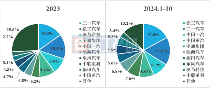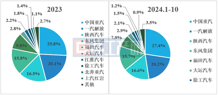2023-2024年中国重卡市场竞争格局(单位:%)