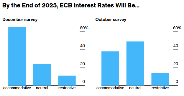 荷兰银行的Bill Diviney指出:“政策放松的理由非常充分,但目前降息50个基点的迫切性并不明显。”更有可能的情况是,欧洲央行将在官方政策声明中做出调整,当前的承诺是“在必要时维持足够的限制性利率”。