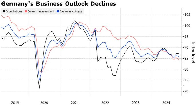 受政府垮台和特朗普再次当选美国总统后贸易关税威胁的影响,德国11月IFO商业景气指数从一个月前的 86.5 降至 85.7,这比经济学家预测的 86 还要差。Ifo的预期指标和当前状况指标均出现下降,预示德国11月份商业前景下滑,持续低迷。